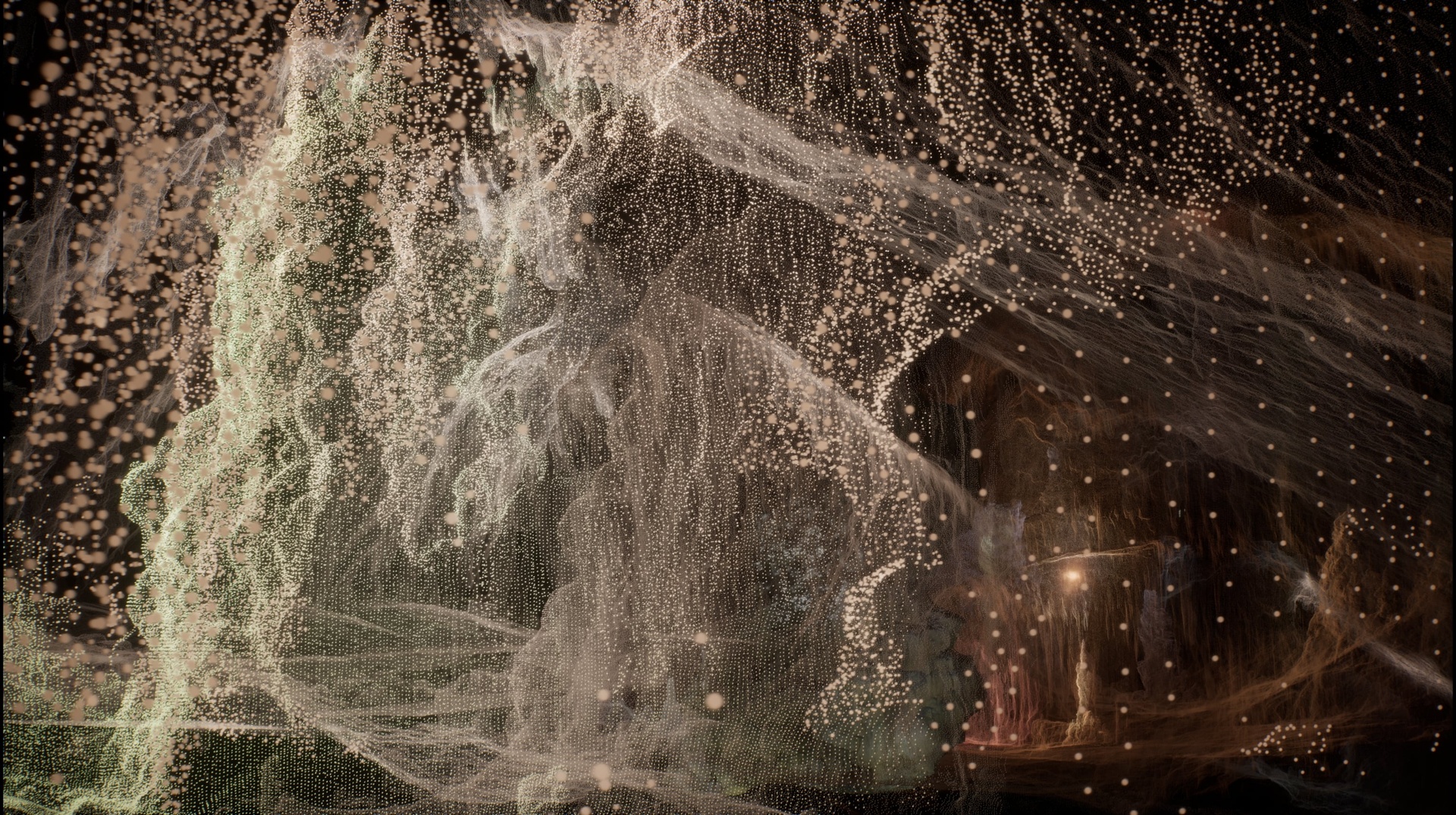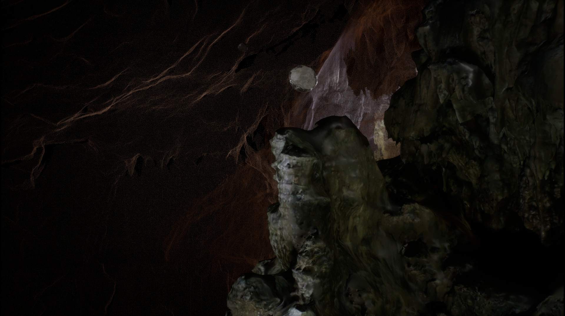 The film was created as part of an installation by the duo Swamp_Matter, which approaches caves and swamps as active, more-than-human spaces. Using a 3D scan of the cave, photogrammetry, and a specula